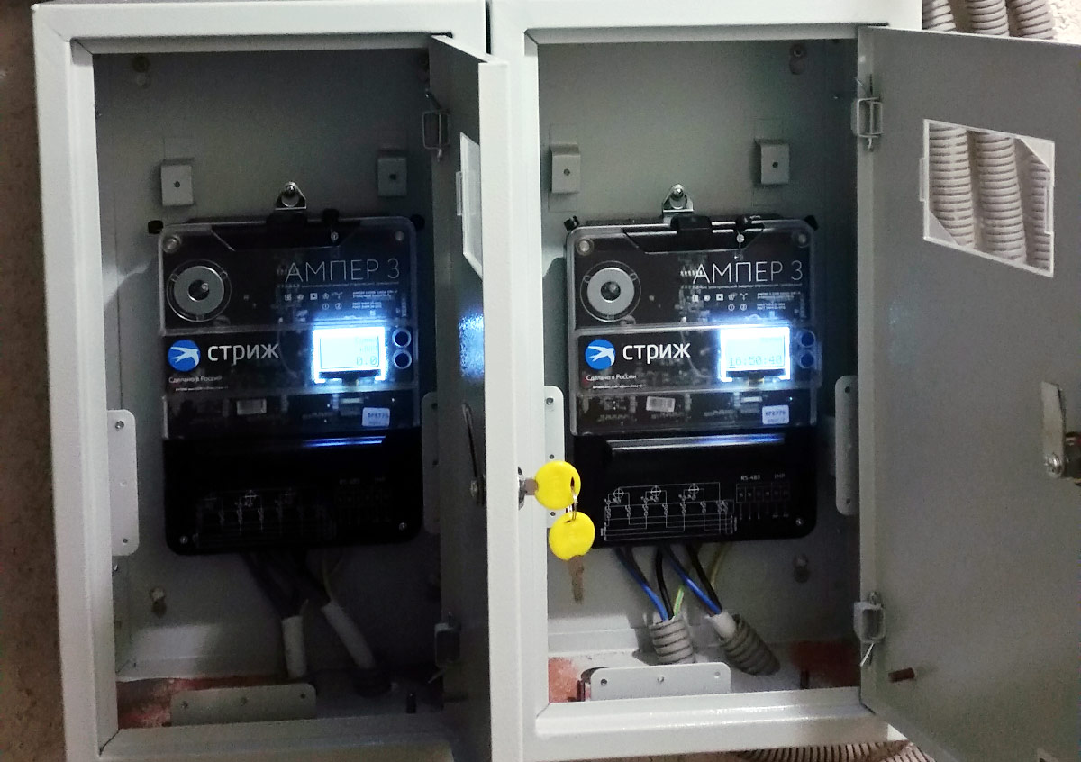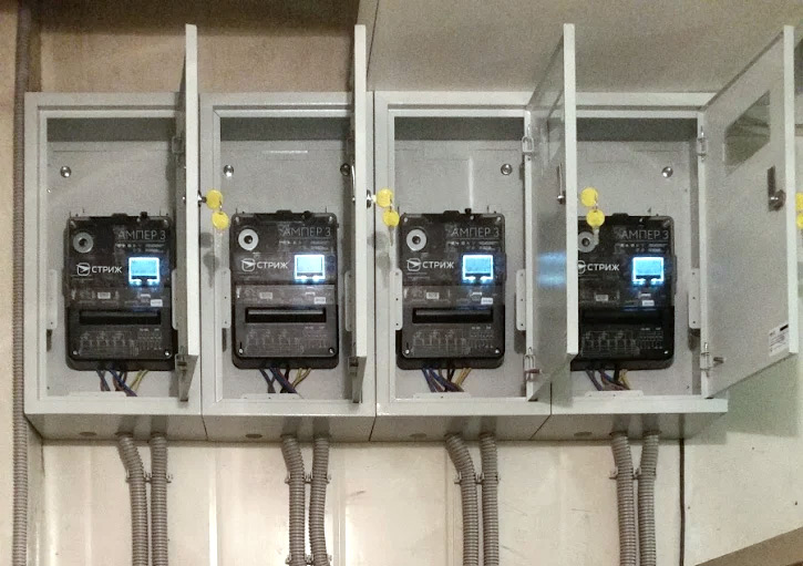 Галерея фотографий «умных» электросчетчиков «СТРИЖ». Фото счетчиков электричества на столбах в СНТ.